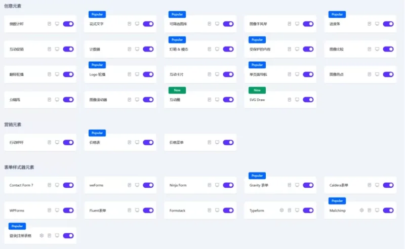 Essential Addons for Elementor Pro 可增强您的 Elementor 页面构建体验,该插件将为 Elementor 编辑器带来酷炫的发布块 (Flex)、发布网格 (Masonry)、发布时间线、花式文本、创意按钮、倒计时、团队成员、推荐、WooCommerce 产品网格、联系表格 7、weForms、信息框、翻转框、双色标题、号召性用语、灯箱和模态、推荐滑块、图像比较、互动促销、互动促销、静态产品、定价表、翻转轮播、互动卡片、增强表格等元素。